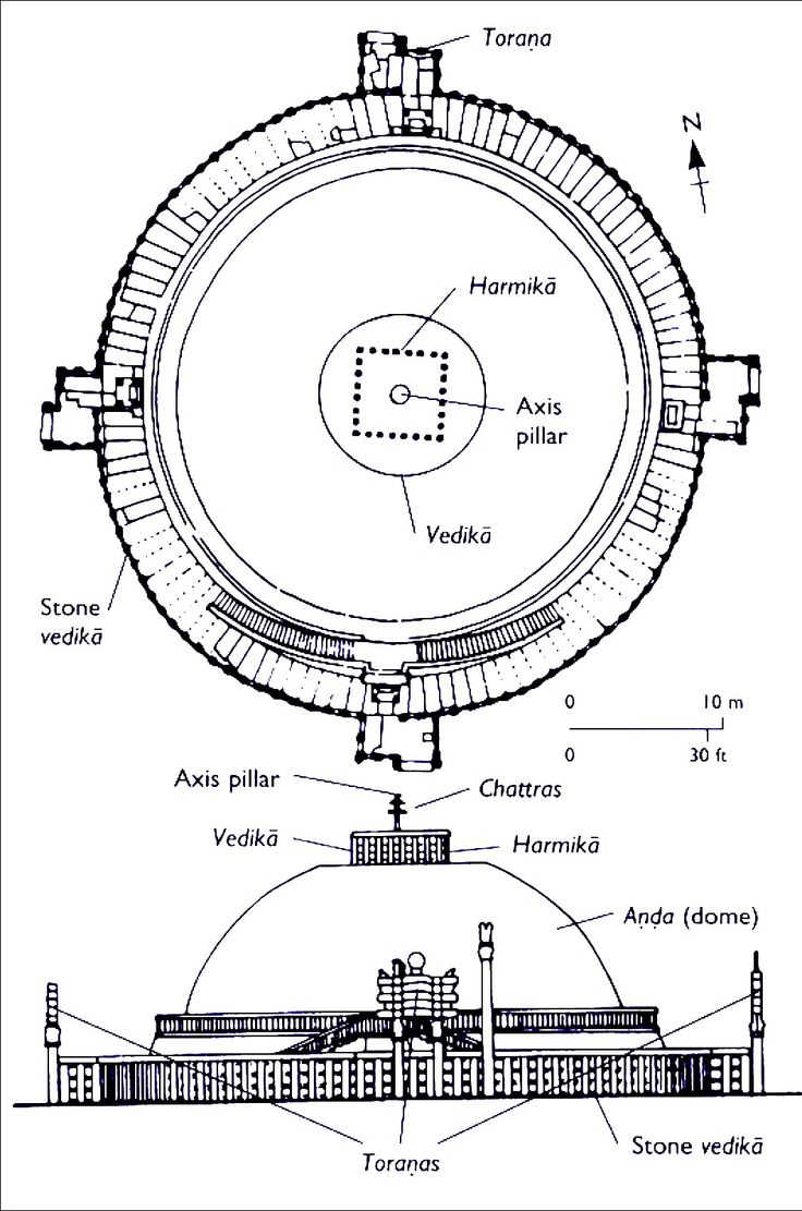 Buddhist Temple (Stupa) stone masonry/sandstone dome Madhya Pradesh, India