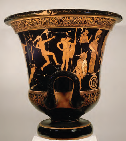 red/gold figures on black terra cotta krater vase