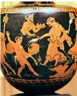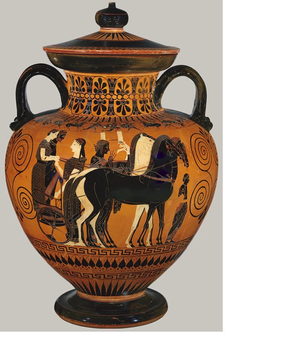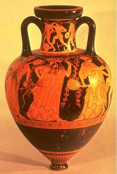 red/gold figures on black terra cotta vase painting